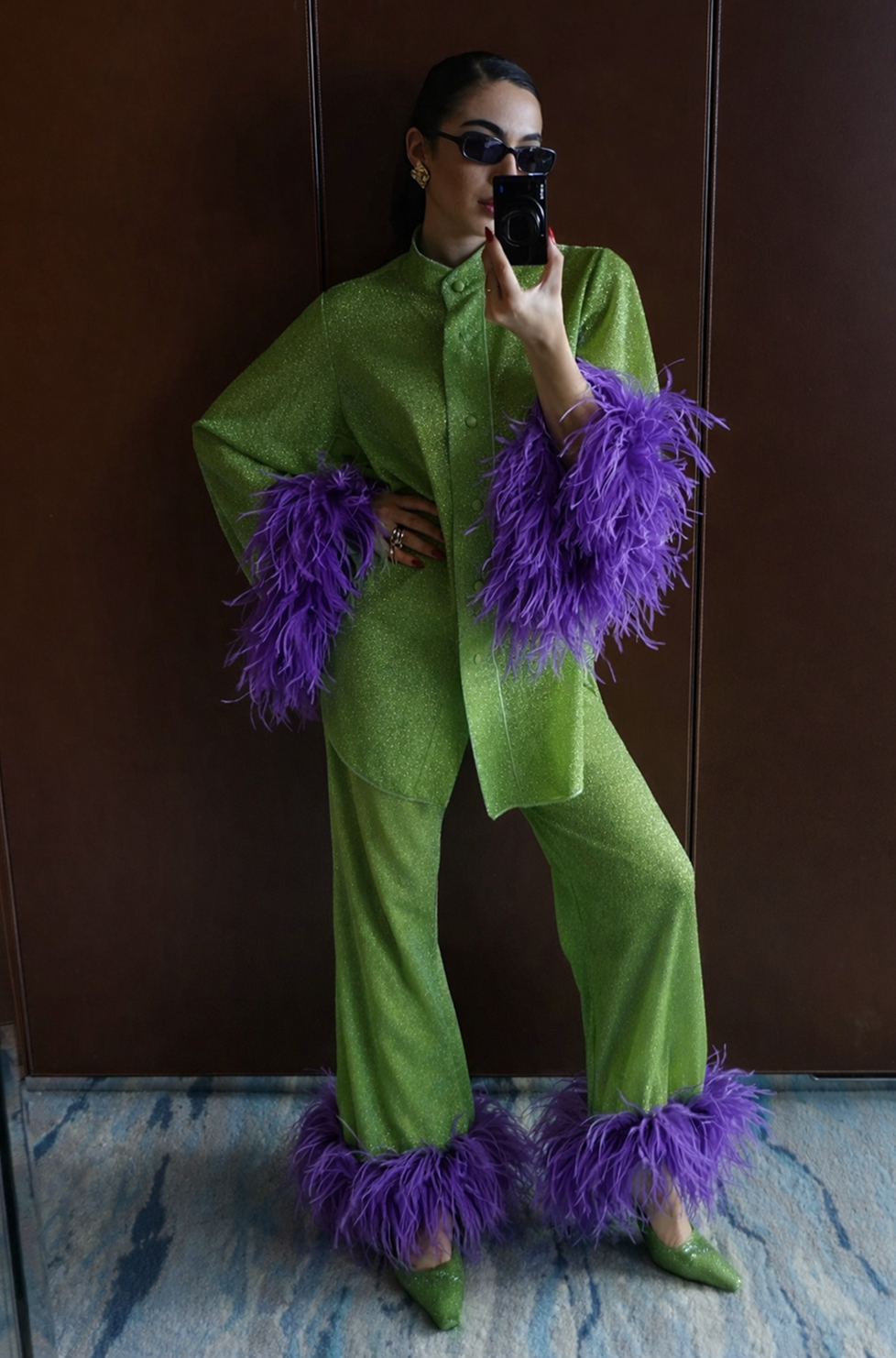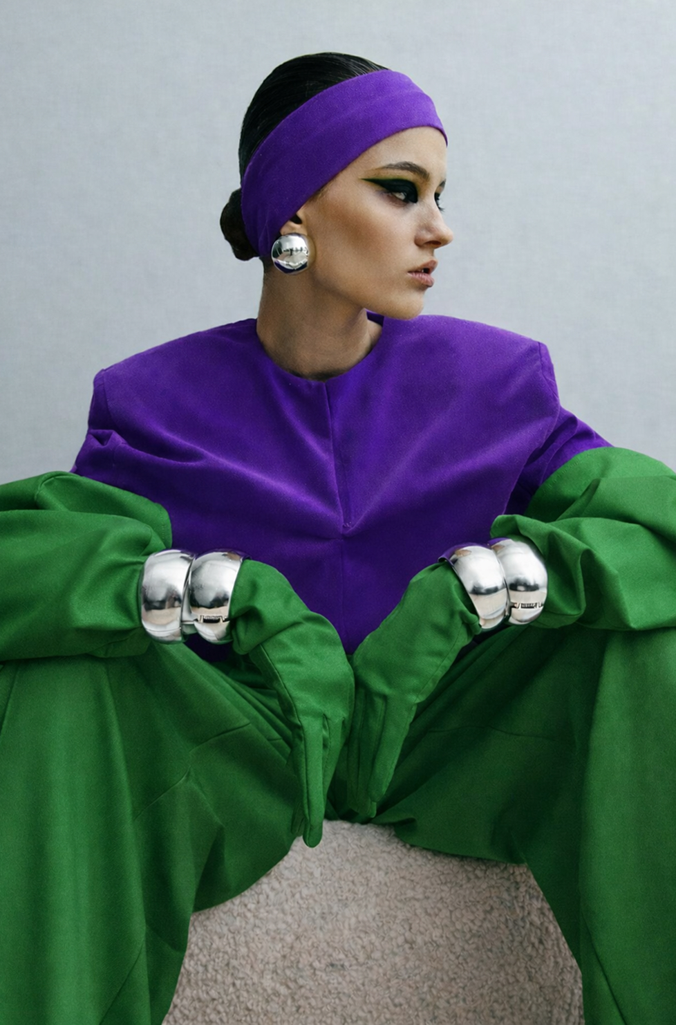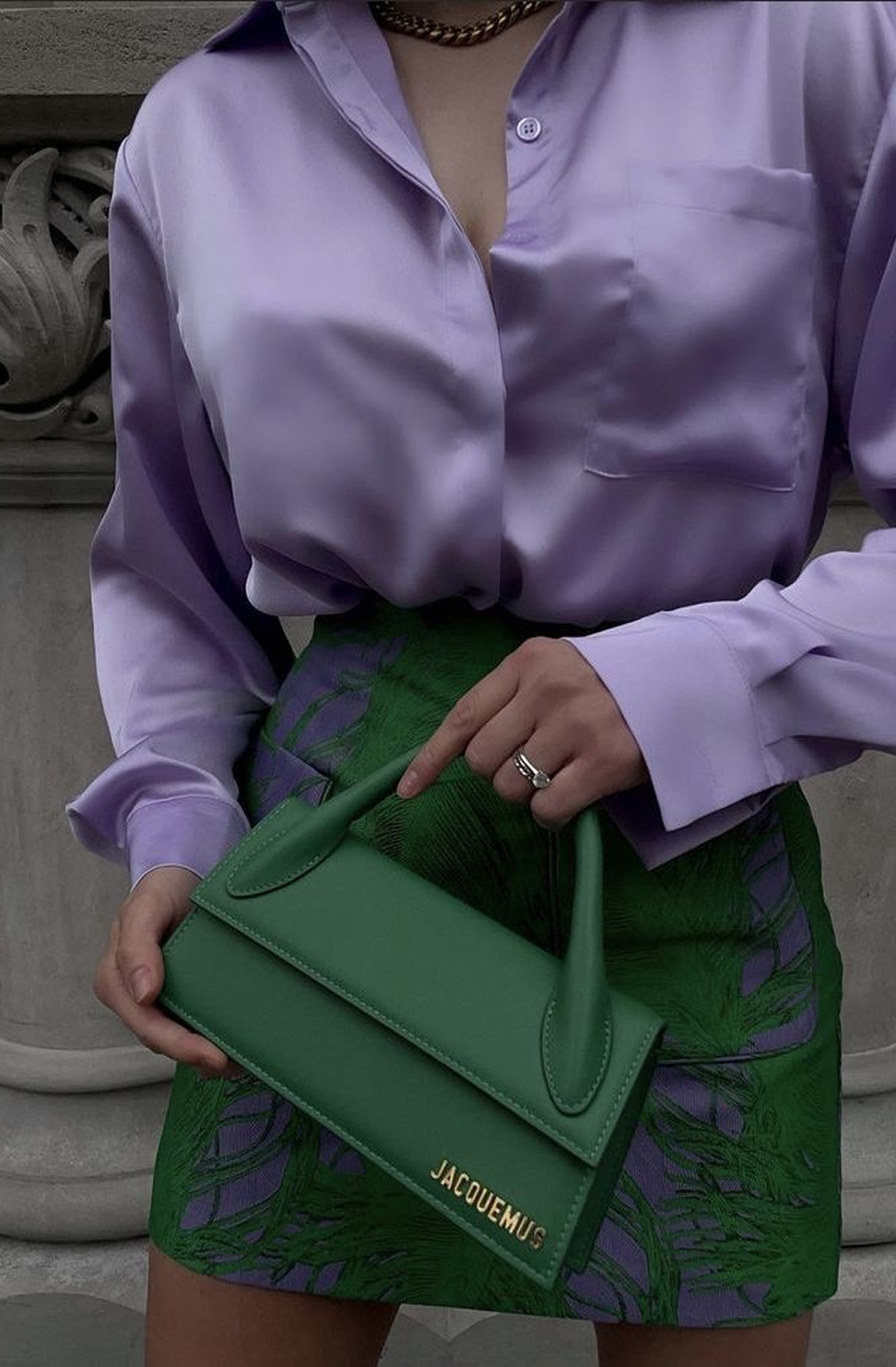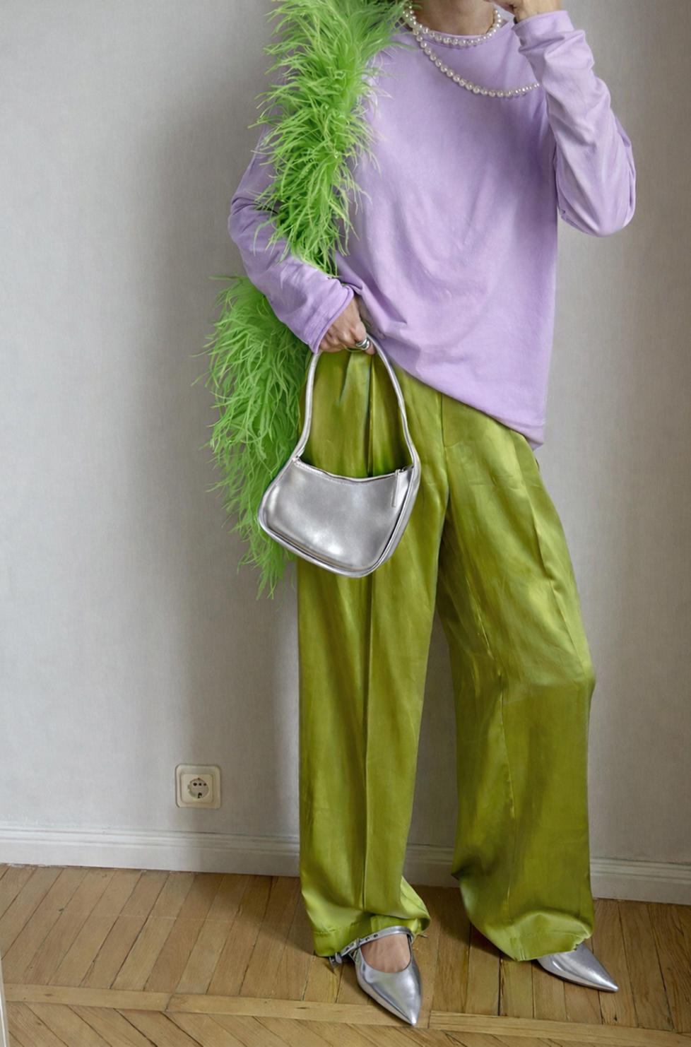 Серебрянный цвет только в деталях (аксессуары, сумки, туфли, украшения и макияж)