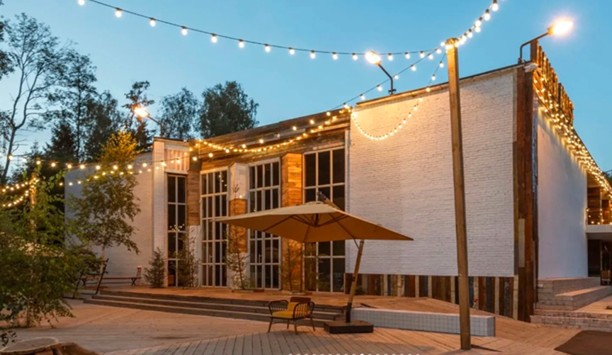 Координаты: 56.099677, 37.048725, Московская область, Солнечногорский район, или можно использовать запрос для навигатора: "The Birch" MANGO HOUSE